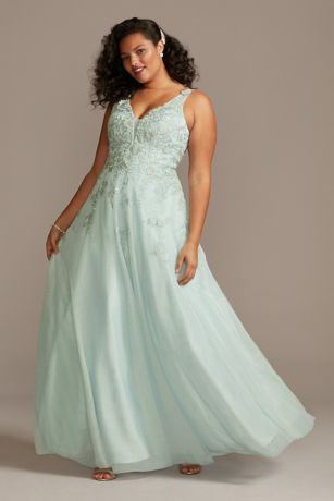 Mesh Plus Size Gown With 3d Floral Applique David S Bridal